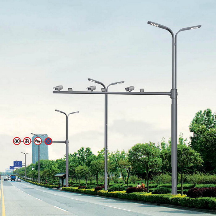 多杆合一是以道路照明杆为基础,对城市道路已有的交通设施进行整合,一般包括信号灯、监控、交通标志牌、路名牌等。整体杆件将减少60%左右,可大大提升城市空间的视觉舒适度,减少各单位立杆的成本,从而将大幅度降低市政支出,真正实现城市节能美观一体化。